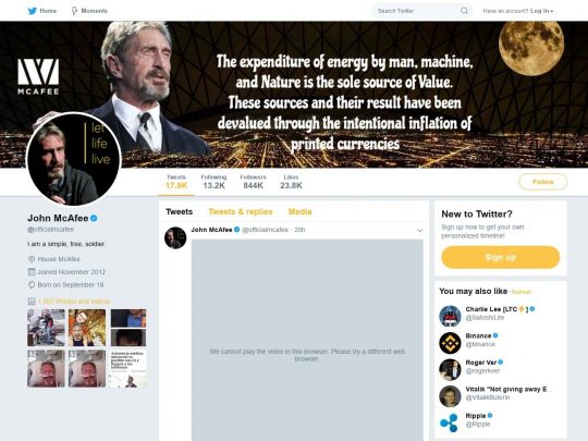 John McAfee (whoismcafee.com) created the first computer anti-virus program called McAfee VirusScan. He has since become very involved with crypto currencies, mining, shilling ICO’s and also contributing to many interviews. He’s quite a wacky personality, unique to say the least, so tune into his Twitter and learn something, or be entertained 🙂 You’ll probably like him If you put aside his association with scammers like Bcash crew, Roger Ver, Craig Wright etc.