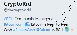 CryptoKid (@thecryptokidd) explains himself to be “#BCH Community Manager at Bitcoin.com” and pitches his fraud statements saying that “Bitcoin is BCH”. Anyone who promotes this nonsense is attempting to scam any new person into crypto, possibly unknowning investors.