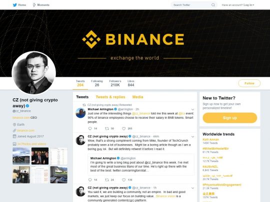 CZ is the founder and CEO of Binance.com, the biggest bitcoin and crypto exchange. CZ is a very prominent person in the crypto space and his Twitter is worth following.
