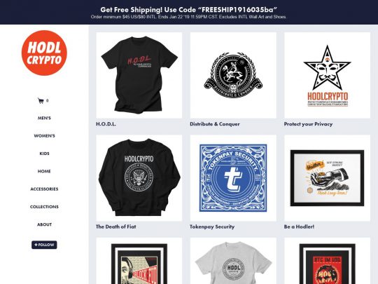 HODL Crypto Threadless page has lots of tshirts and accessories that are crypto related.