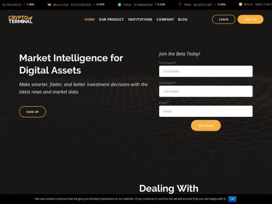 CryptoTerminal is a real time news and digital asset/cryptocurrency prices app. Keep in the know, of the most current news and prices of Bitcoin and other cryptocurrencies.