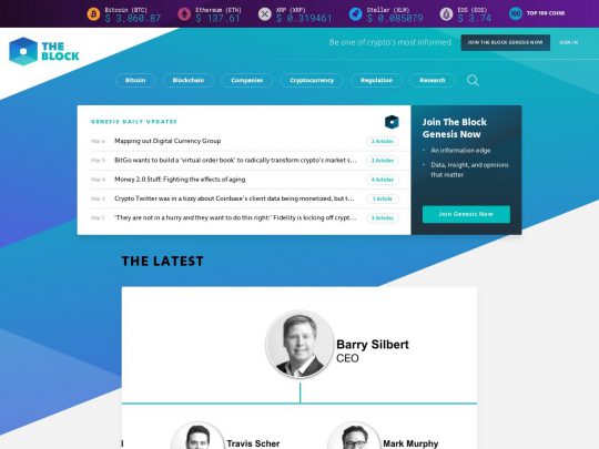 The Block Crypto will keep you informed of what is happening with cryptocurrencies, bitcoin, and blockchain all day everyday. Checkout their sections Bitcoin, Blockchain, Companies, Cryptocurrency, Regulation, and Research. They also have a live top 100 cryptocurrencies by market capitalization chart.