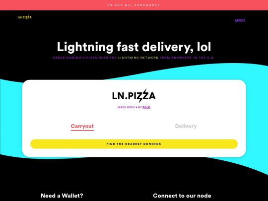 Order Domino’s Pizza from the Bitcoin Lightning Network. Fast delivery to anywhere in the USA, and currently 5% discount!