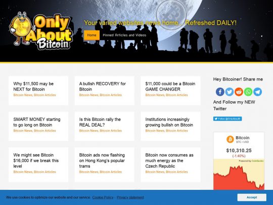 OnlyAboutBitcoin is a Bitcoin news aggregator site. You’ll find many news articles from various news sources like Decrypt, Fortune, CoinTelegraph, Bitcoinist, TheBlockCrypto, and more.