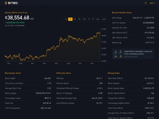 Real time Bitcoin dashboard for price and statistics, updating live.